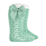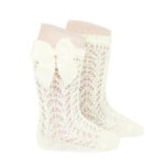 Un accessorio raffinato capace di rendere ancora più speciale ogni outfit del tuo piccolo. Queste calze alte sono realizzate in morbido cotone lavorato con trama traforata, una lavorazione delicata che garantisce traspirabilità, comfort e una piacevole sensazione sulla pelle.