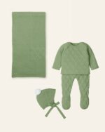 Il colore Trebol, un elegante verde salvia, dona al set uno stile senza tempo, sobrio e ricercato, rendendolo una scelta ideale anche come regalo nascita o corredo ospedale.
