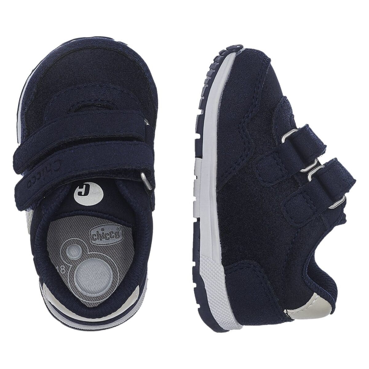 La chiusura regolabile con doppio strappo garantisce una calzata pratica e sicura. La suola con tecnologia Flex-zone, dotata di linee di flessione, favorisce la naturale flessibilità del piede durante la camminata. Completa il tutto il sottopiede Impronta Naturale Chicco, studiato per sostenere correttamente l’arco plantare e accompagnare lo sviluppo fisiologico del piede.