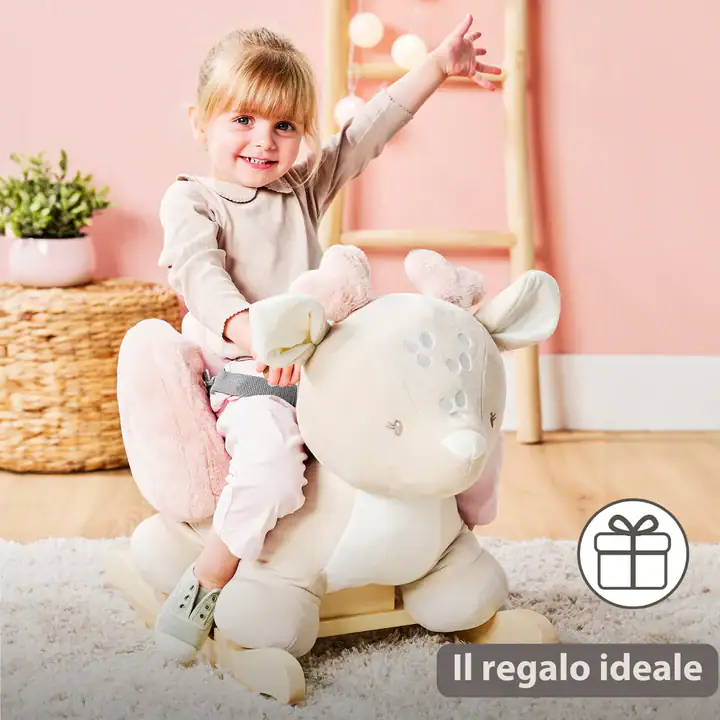 • Cavalluccio a dondolo in peluche a forma di cerbiatto