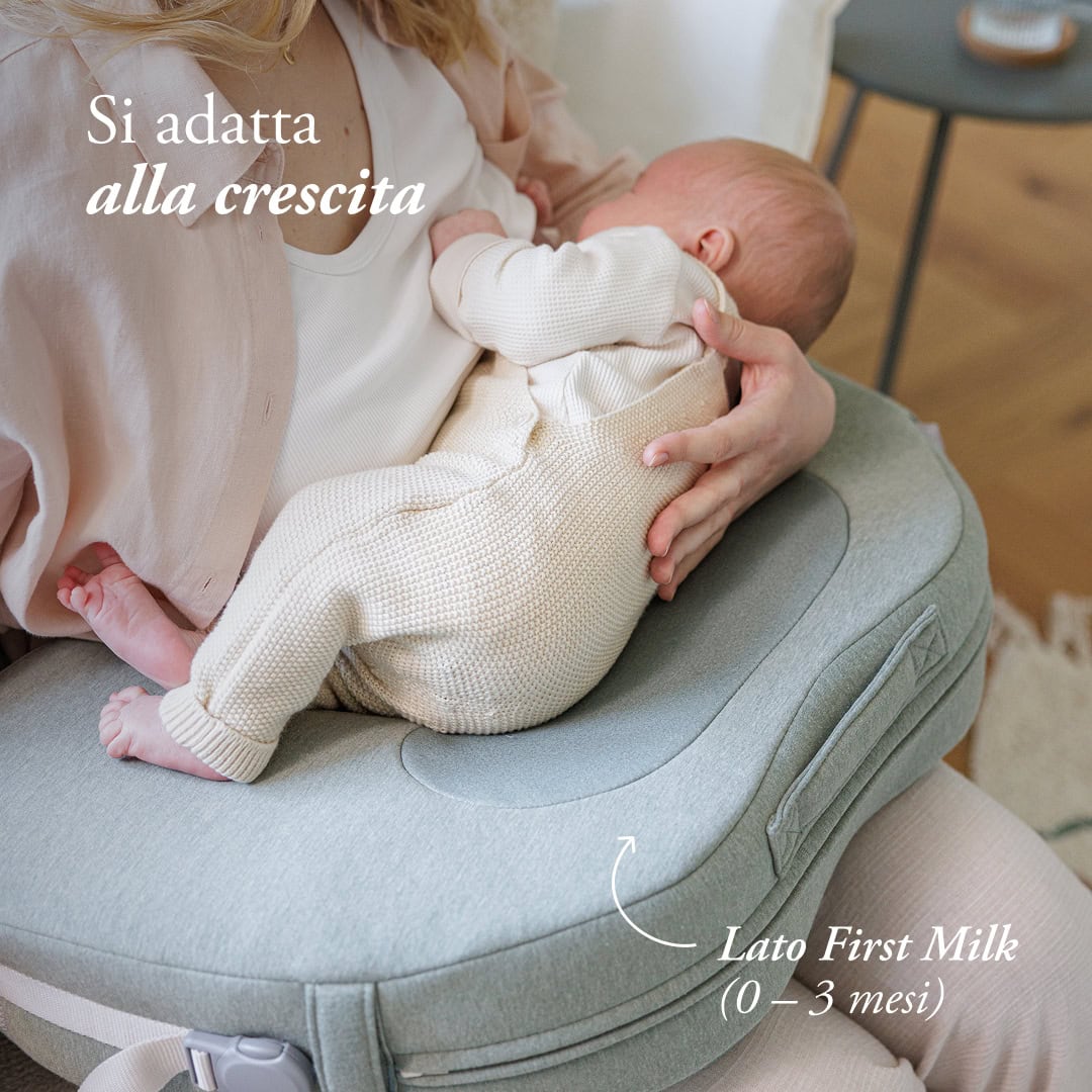 Versatile e funzionale, può essere utilizzato non solo per l’allattamento ma anche come supporto per il relax del bambino, per il tummy time e come aiuto nelle prime fasi in cui il piccolo inizia a stare seduto.
