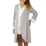 L’apertura frontale con chiusura a fiocco rende la vestaglia pratica e funzionale, perfetta sia per l’uso quotidiano che per la degenza in ospedale. La manica lunga offre maggiore copertura e comfort, rendendola ideale in ogni stagione.