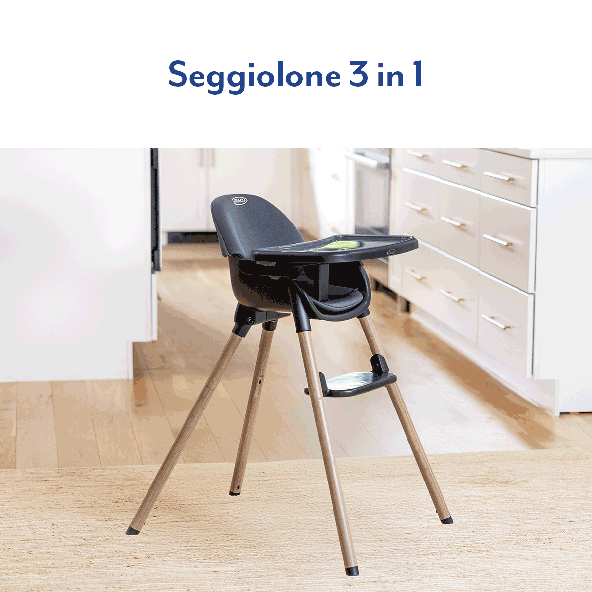 Il seggiolone Graco Presti 3 in 1 è progettato per accompagnare la crescita del bambino dalla prima pappa fino all’autonomia a tavola. Un prodotto versatile, moderno e funzionale, pensato per adattarsi perfettamente alla vita quotidiana e agli spazi di casa.
