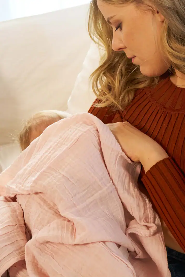 Oltre allo swaddle, queste mussole si trasformano facilmente in una coperta per allattamento, perfetta per creare uno spazio intimo e riservato tra mamma e bebè anche quando si è fuori casa.