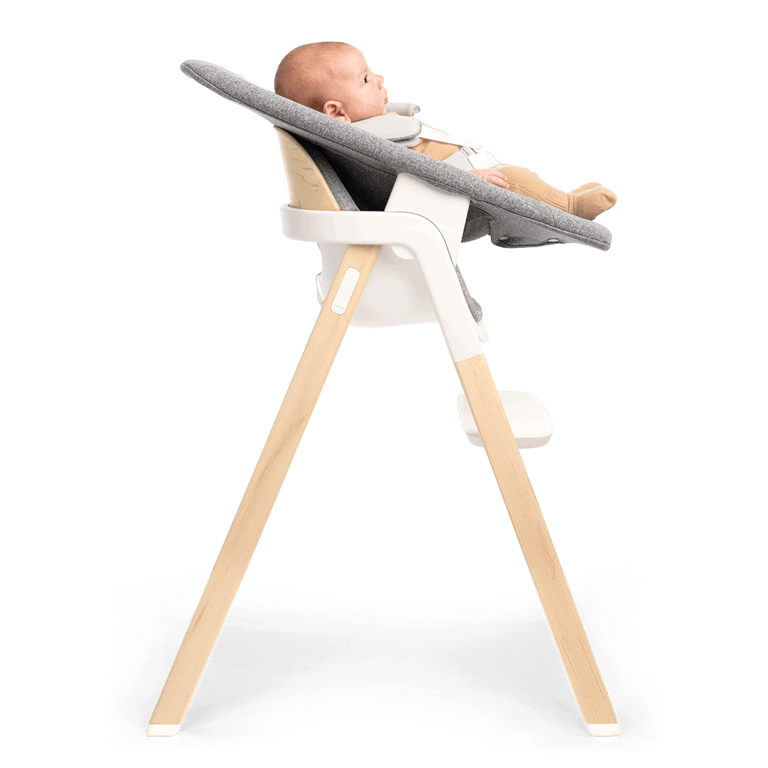 Grazie alla sua doppia modalità di utilizzo, BRYN si trasforma facilmente da seduta per il seggiolone a sdraietta a dondolo rilassante, adattandosi ai diversi momenti della giornata: dalle prime pappe ai momenti di relax.